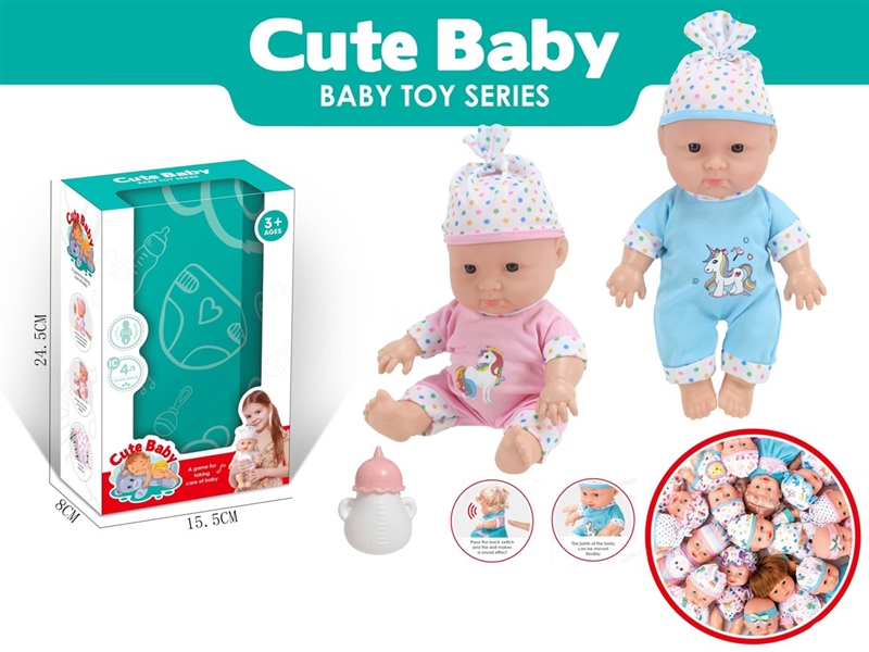 22cm吹气身体,搪胶脚手,定眼娃娃,带独角兽,提篮,奶嘴,奶瓶,配件,无带IC,无功能